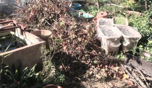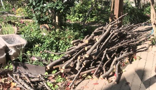 適当な寸法に切りそろえて、紐で括って月に一度の大型可燃ごみに