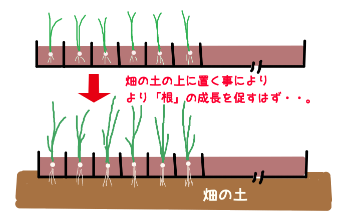 「プラグトレー」に入れたまま畑の上に置いた。