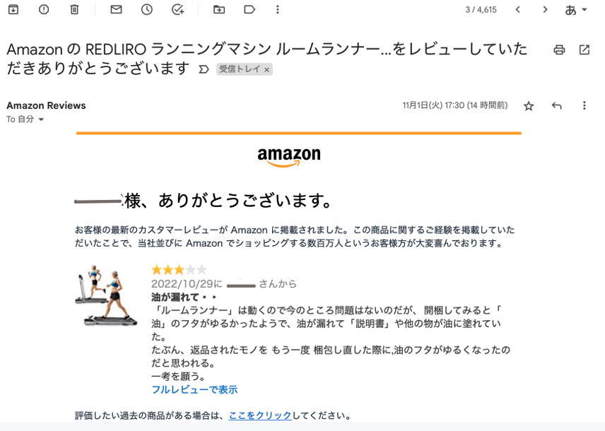 直接 Amazonには関係ないとしても、油入れに不備があり
