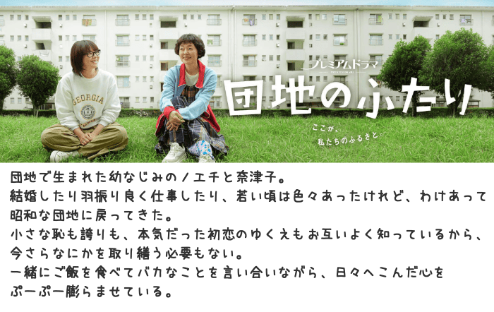 昨年の9月にNHK BSで放映された「 団地のふたり」(全10話 )は、久しぶりに面白いドラマだった。
