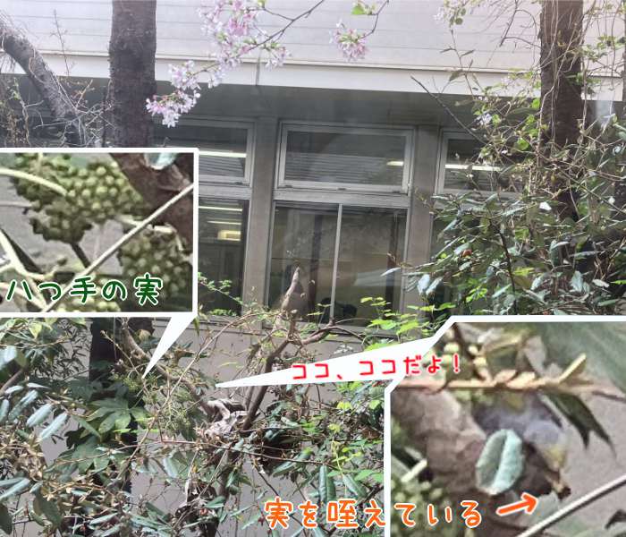 時々 鳥が飛んできて、辺りを気にしながら、黒紫色に熟した八つ手の”実”を啄んでいる。