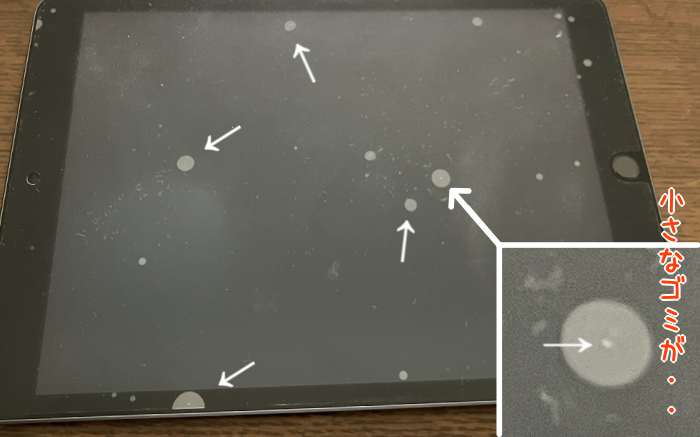 ・・結果、アチラコチラに小さなゴミが残っていたようで、フィルムを貼ると ゴミの部分に空気が残ってしまった・・。