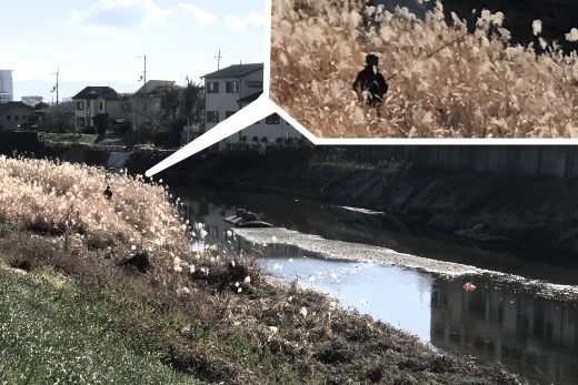 昨年の秋頃から この堤道を通るたびに見かける釣り人・・。
